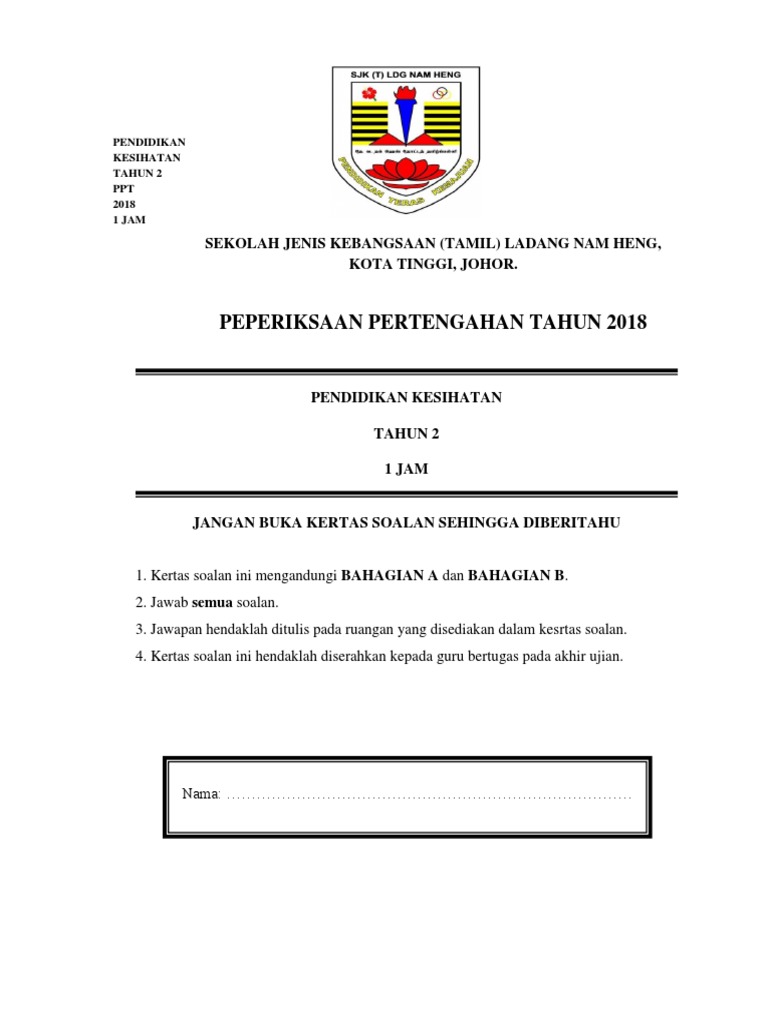 Contoh Muka Hadapan Kertas Peperiksaan Pertengahan Tahun