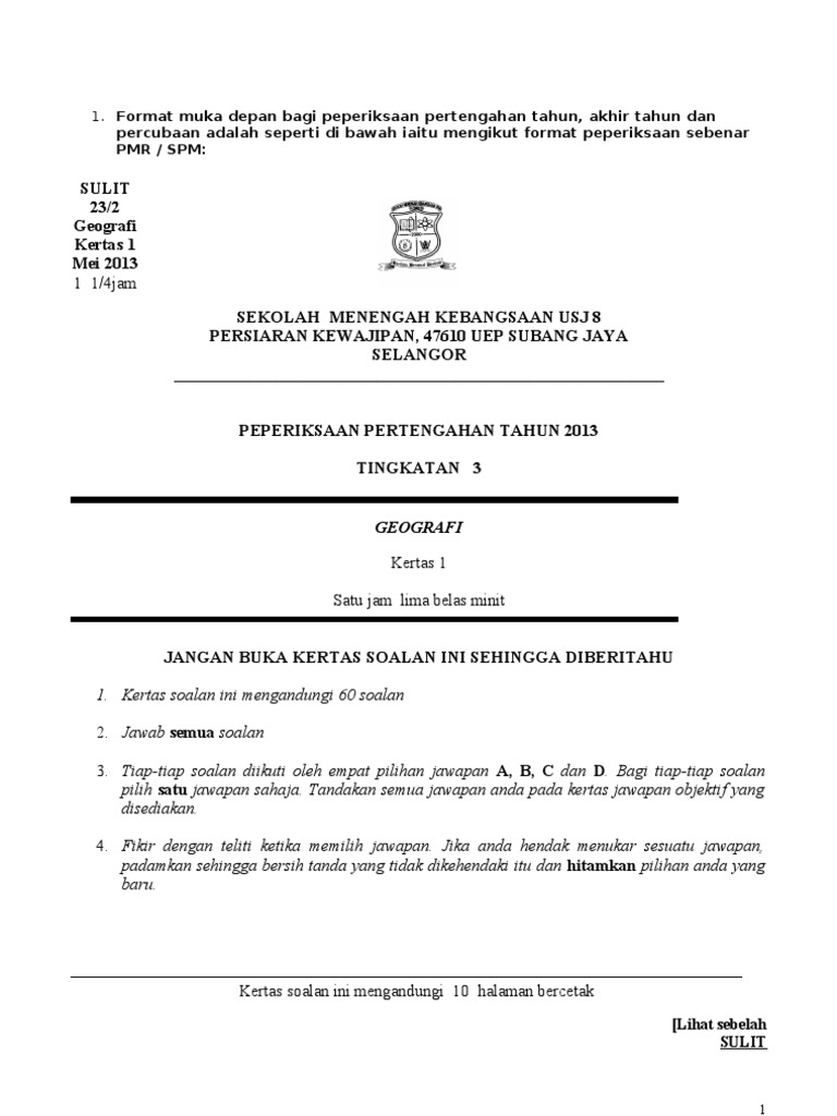 Format Muka Hadapan Kertas Soalan Pdf